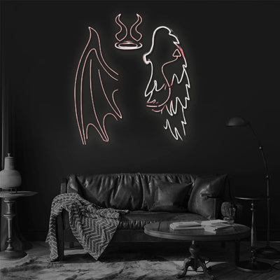 Angel and Devil Wings Neon LED Sign Light Up Wall Art Unique Home Decor Modern Accent Creative Room Display Bold Store Sign Aesthetic Decor
